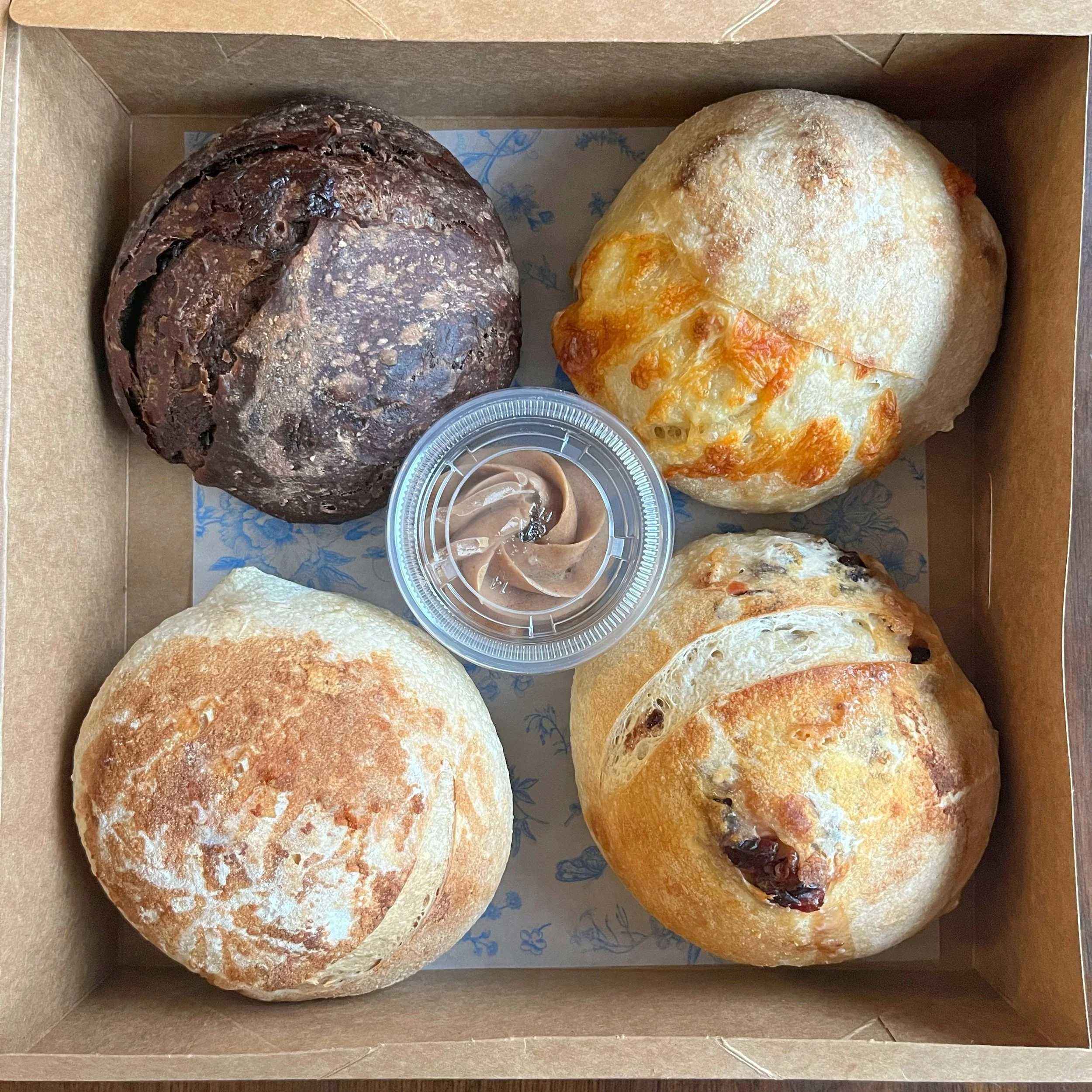 Order Now Categories: All Sourdough Cookies Muffins Flights Extras Other Treats Order Now All Sourdough Cookies Muffins Flights Extras Other Treats Chocolate Espresso Sourdough Loaf $12.00 Add To Cart Added! 6 Classic Cinnamon Rolls with Choose-your-own frosting $15.00 View Options 1 dozen holiday cookie variety $20.00 Add To Cart Added! 1/2 dozen holiday cookie variety $12.00 Add To Cart Added! Pumpkin Spice Latte Cookies- 1/2 dozen $10.00 Add To Cart Added! Sourdough Muffin Flight $12.00 Add To Cart Added! 4 pack Sourdough White Chocolate Pumpkin Muffins $12.00 Add To Cart Added! 4 pack Sourdough Lemon Raspberry Muffins $12.00 Add To Cart Added! 4 pack Sourdough Coffee Cake Muffins $12.00 Add To Cart Added! 4 pack Sourdough Double Chocolate Muffins $12.00 Add To Cart Added! White Chocolate Cranberry Sourdough $11.00 Add To Cart Added! Mini Sourdough Flight $25.00 Add To Cart Added! Whipped Cinnamon Honey Butter-4 oz $3.00 Add To Cart Added! Sourdough Bread Knife $20.00 Add To Cart Added! White Cheddar Sourdough Loaf $11.00 Add To Cart Added! Classic Sourdough Loaf $8.00 Add To Cart Added!